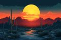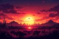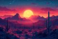 Surreal Desert Sunset: Cacti Silhouettes Against a Crimson Sky