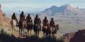 Majestic Procession of Native American Horse Riders in Desert Canyon
