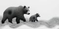 A Monochrome Journey Through Nature: Bear Sculptures Over Wavy Lines
