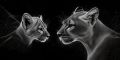 Enigmatic Black-and-White Artwork Featuring Two Pumas in Stargazing Detail