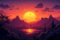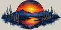 Surreal Sunset Over Cactus-Lined Lake: A Vivid Phoenix Artwork