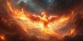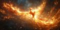 Majestic Fiery Phoenix Rising Amidst Cosmic Flames