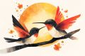 Graceful Hummingbirds Against the Golden Moonlight in Artistic Render