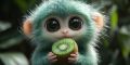 Captivating Furry Green Creature Holding a Kiwi in a Lush Forest