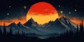 Majestic Mountains Under a Giant Crimson Moon: A Starlit Night