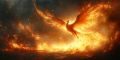 Fiery Phoenix Rises Majestically from Ashes in Mythological Splendor