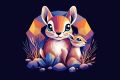 Vibrant Geometric Interpretation of Mother and Child Squirrels