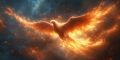 Majestic Phoenix Rising in Fiery Splendor Against Cosmic Backdrop