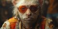 Stylishly Accessorized Monkey Portrayed with Vintage Orange Sunglasses