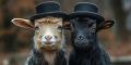 Elegantly Dressed Goats in Top Hats: A Whimsical Portrait