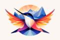 Vibrant Geometric Hummingbird Art Against a Stylized Sunset