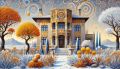 Enchanting Wrigley Mansion in Autumn's Embrace: A Klimt-Inspired Vision
