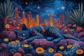 Vibrant and Surreal Desert Nightscape: A Phoenix Artistic Representation
