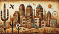 Nostalgic Watercolor Impressions of Phoenix Cityscape Amidst Desert