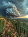 Majestic Storm Over Phoenix: Cacti Silhouetted Against Lightning