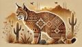 Intricate Tribal Motifs Embellish Arizona Bobcat in Desert Artwork