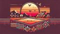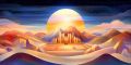 Vibrant Digital Artwork of a Surreal Desert Cityscape at Sunset