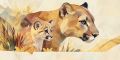 Majestic Mountain Lion and Cub in Stylized Wall Art Illustration