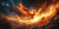 Majestic Fiery Phoenix Rising Amidst Cosmic Flames