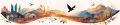 Enigmatic Waves and Soaring Birds: A Dance of Colors in Art