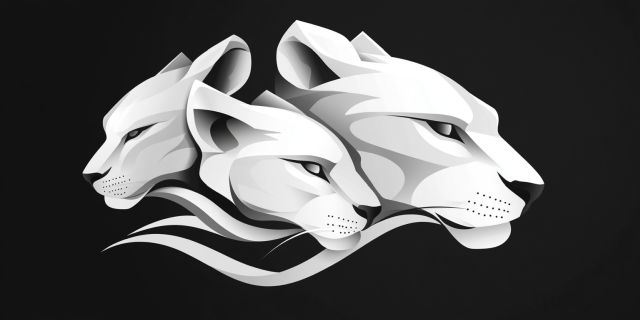 Striking Monochrome Silhouette of Cougars in Artistic Harmony