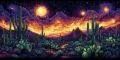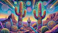 Vibrant Saguaro Cacti Emblazoned with Hohokam Inspirations under a Starlit Sky