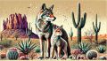Vibrant Interpretation of Coyotes in Arizona's Desert Landscape