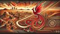Golden Phoenix and Desert Vistas: A Serene Illustration of Harmony
