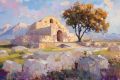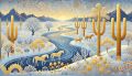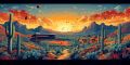 Serene Desert Sunrise in Stylized Phoenix Botanical Garden Art