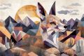 Geometric Fox Amidst Arizona Desertscape Under a Sunset Sky