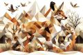 Geometric Brilliance: Stylized Foxes in a Modern Artistic Forest