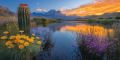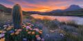Vibrant Sunset Over Phoenix Lake with Cactus and Wildflowers