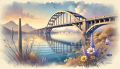 Serene Watercolor Rendering of Roosevelt Lake Bridge at Sunset