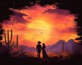 Sunset Embrace: A Romantic Silhouette Against a Vivid Arizona Sky