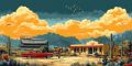 Stunning Depiction of Historical Pueblo Ruins at Sunset in Phoenix