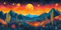 Vibrant Geometric Sunrise Over Desert Landscape in Phoenix, AZ
