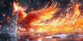 Fiery Phoenix Rises from Watery Depths in Mystical Display