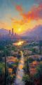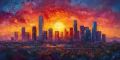 Colorful Dusk Skyline: Vibrant Artistic Impression of Phoenix, AZ