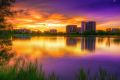 Breathtaking Sunset Over Phoenix Lake with Vibrant City Backdrop