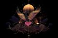 Majestic Bird Soars Over Stylized Phoenix Landscape in Warm Tones