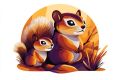 Warm Autumn Colors Embrace Mother and Child Chipmunk Illustration