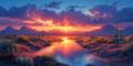 Surreal Desert Twilight: Vivid Colors Illuminate Tranquil Scene