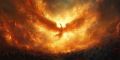 Fiery Phoenix Rises in Splendor Amidst Ember and Ash
