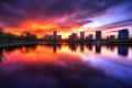 Sunset over Phoenix Skyline Reflects Vibrant Hues in City Lake