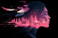 Surreal Portrait of Woman Embracing a Dreamlike Cityscape