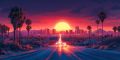 Vibrant Sunset Over Retro Phoenix Diner and Classic Car Scene